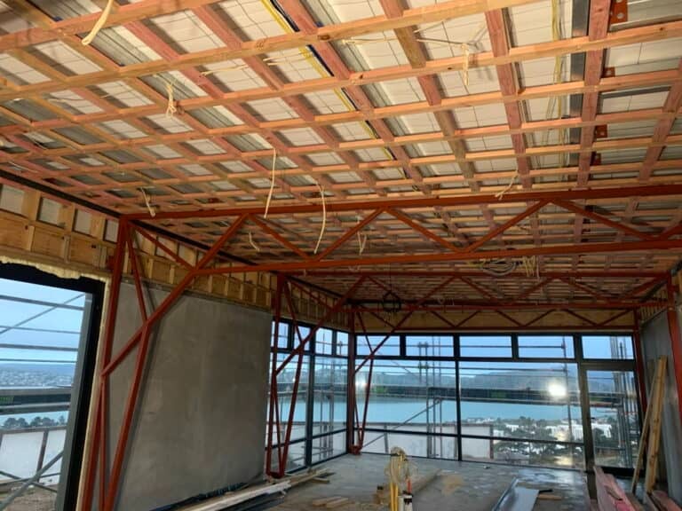 The project involved marking out the proposed structure, and preparing, pouring, and installing foundation slabs for the pre-cast panels to attach to before pouring the exposed concrete floors. We installed the roof framing and roofing, the underfloor heating, the reinforcing to the slabs, and windows. We constructed the interior walls, installed the ply ceilings, fitted off the kitchens and bathrooms, installed floor coverings, and added all timber finishings.
